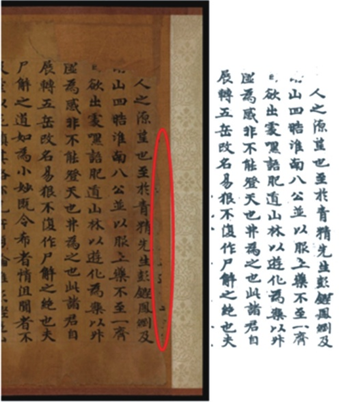 图4 《丛残》图版(右)与北敦14523-3号(左)边缘对比