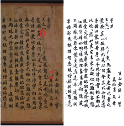 图3 《丛残》图版(右)与北敦14523-2号写卷(左)边缘对比