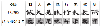 表2 《丛残》与辽博4969-2号同一文字字形对比